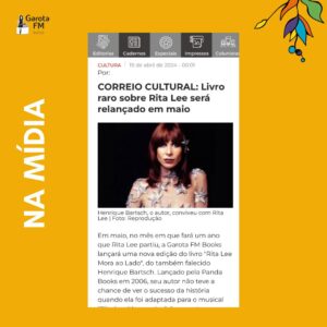 No mês em que faz um ano que Rita Lee partiu, a Garota FM Books lança uma nova edição do livro “Rita Lee Mora ao Lado – Uma biografia alucinada da Rainha do Rock”, do também falecido Henrique Bartsch. Lançado pela Panda Books em 2006, seu autor não teve a chance de ver o sucesso da história quando ela foi adaptada para o musical “Rita Lee Mora ao Lado”, que estreou em 2014 com Mel Lisboa no papel de Rita.